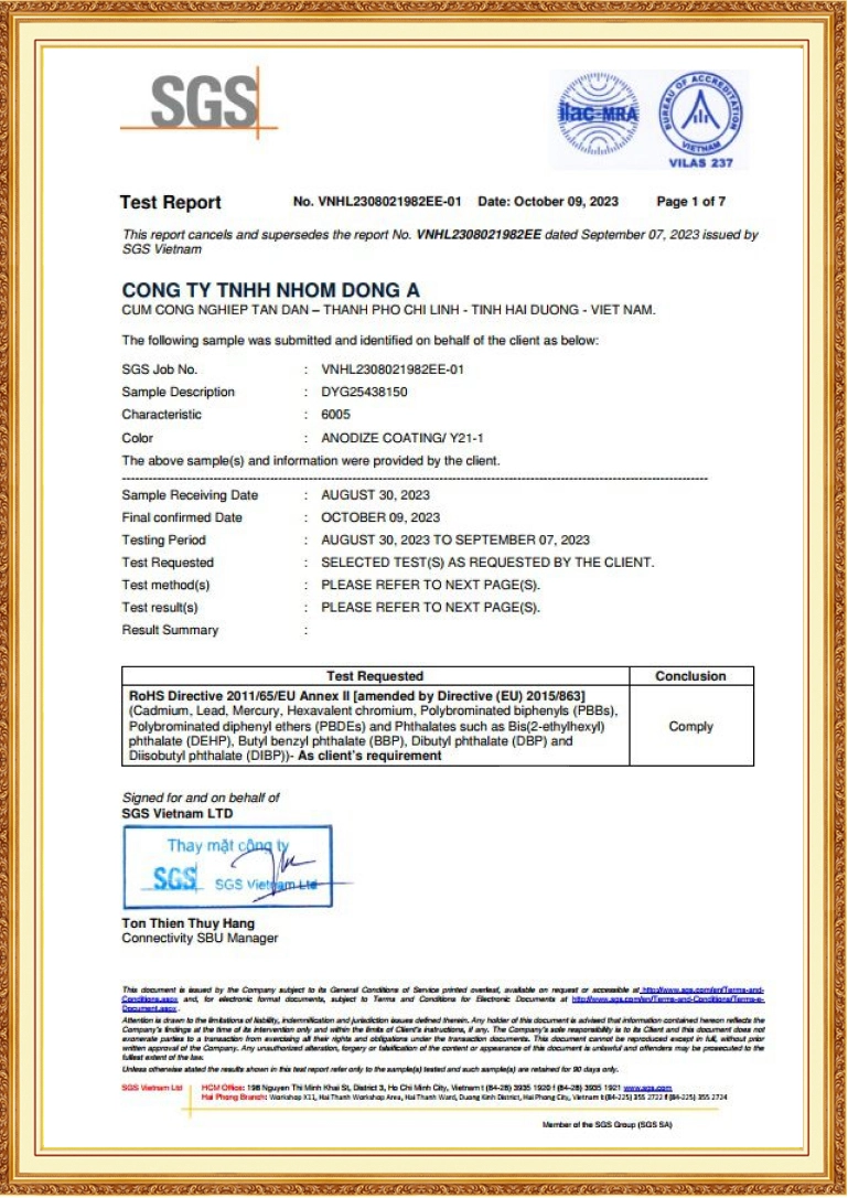 + Tháng 8/2024, Nhôm Đông Á được UBND tỉnh HD chấp thuận cho phép mở rộng dự án 3 nhà máy, nâng tổng diện tích lên gần 120,000m2, công suất sản xuất dự kiến đạt 150,000 tấn
