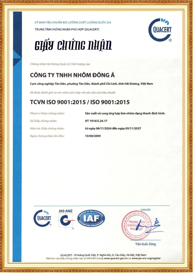 + Khẳng định vị thế nhà máy sản xuất nhôm thanh định hình hàng đầu Việt Nam.